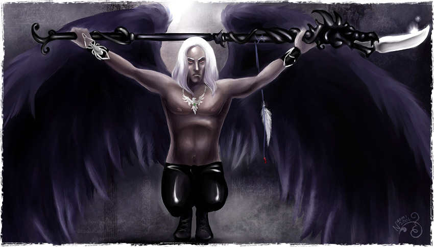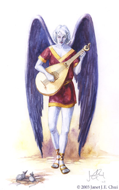 (Qaeglans) are 'Winged Elvish' with three distinct sub pieces, which vary widely in height, strength, and intelligence/inner strength and temperament. Doves are the smallest, most intelligent, have the most magickal potential and strongest Psidahrian talents. They also have the brightest coloured wings. Nearly every Dove with white wings and white hair is a Psi-Healer with extremely high Psi potential. [[ Image at right by Janet J.E. Chui, (I have asked permission to use this) see her stuff at Elfwood ]] This race has a height distribution from 90 to 135 centimetres. [3 to 4.5 feet tall] The hitpoints and spellpoints for this race are: