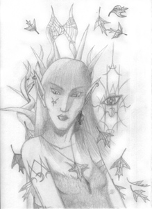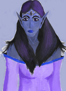 Dark Elves are the slave race created when Ghardra (Goblins?) routinely raped any elven women they captured. Some hate the Ghardra, some hate everybody. Those who align themselves with the light credit Khatzen with their liberation from slavery and hold annual festivals to which most Khatzen are always invited as guests of honour. Many will often form uncharacteristic friendships and partnerships with Delvahrians (Dwarves). Dark Elf artisans who team up with Delvahrian weaponsmiths or armourers help produce beautiful weapons and armour that contain, or can contain, blessings, curses, and/or magickal 'charms'. [[ Image ('Night Elf') by Alex Brittan, used by permission. ]] See his stuff at Elfwood. This race has a height distribution from 127 to 190 centimetres. [4.5 to 6.5 feet] The hitpoints and spellpoints for this race are: