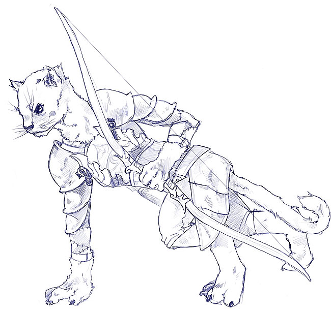 Black, Grey, White, Brown, Orange, solid, spotted, or stripped hair. Jade, Amber, Grey or Indigo eyes. Covered with fur, Strong, Dextrous, Agile. Very Low Magik Potential and almost no magik resistance, Can be amazing healers, can use Religious Magick. Fair to Low Inner Strength, can be obsessed with pride and tradition. Good Stamina, good recuperative powers. |